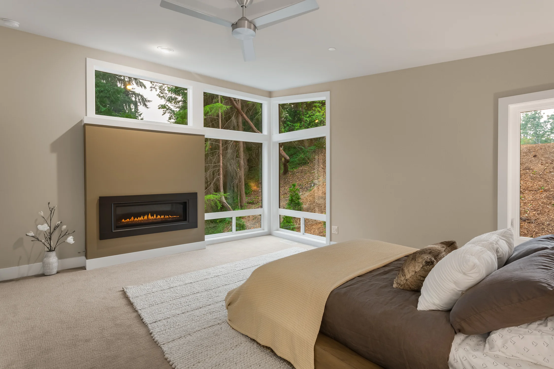 Lot 1, The Carillon features 4 bedrooms and 3.75 bathrooms with a total of 3,373 sq. ft. of living space. Main floor features 10 ft. ceilings, a spacious great room, dining room, entertainment-size kitchen with separate scullery, laundry room and den with adjacent 3⁄4 bath. Upstairs provides a spacious master bedroom with a contemporary gas fireplace, dramatic master bath with huge walk-in tile shower, free-standing designer spa tub and an impressive walk-in closet with built-in solid shelving, 3 bedrooms, an ensuite bath and jack and jill bath. The Carillon plan also includes a 3-car garage, lower level rec room with extra storage, and a 500 SF entertaining deck with covered see - through gas fireplace off the great room.
