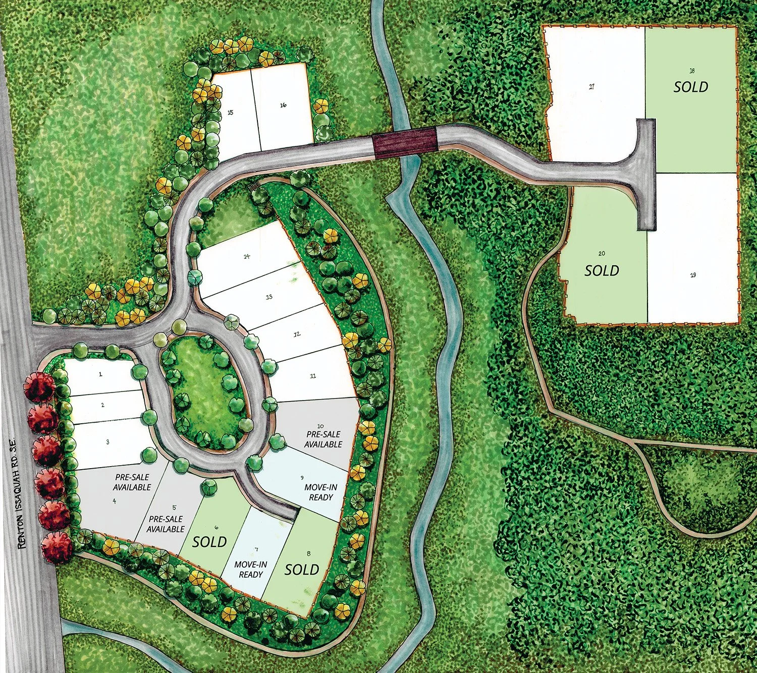 Steps from Downtown Issaquah and uniquely situated along 21 acres of NW beauty, you’ll find the next one of a kind offering from Steve Burnstead Construction and Suver & Burnstead Custom Homes. Brand New Custom Designs, created to celebrate the greenbelt backing lots and numerous Territorial Views.